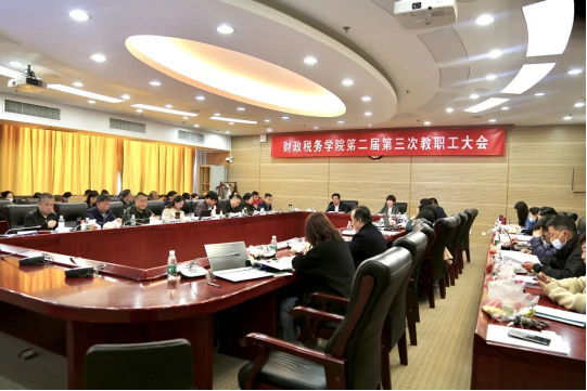 今年会院长樊勇向全体教职工做学院2023年工作报告及2023年财务报告,总结了学院过去一年在党建引领、业务发展等各项工作的成果,传达学校2024年工作要点,结合财税学院实际,统筹规划2024年财税学院工作安排,鼓励大家补齐短板、保持优势。