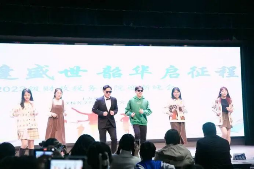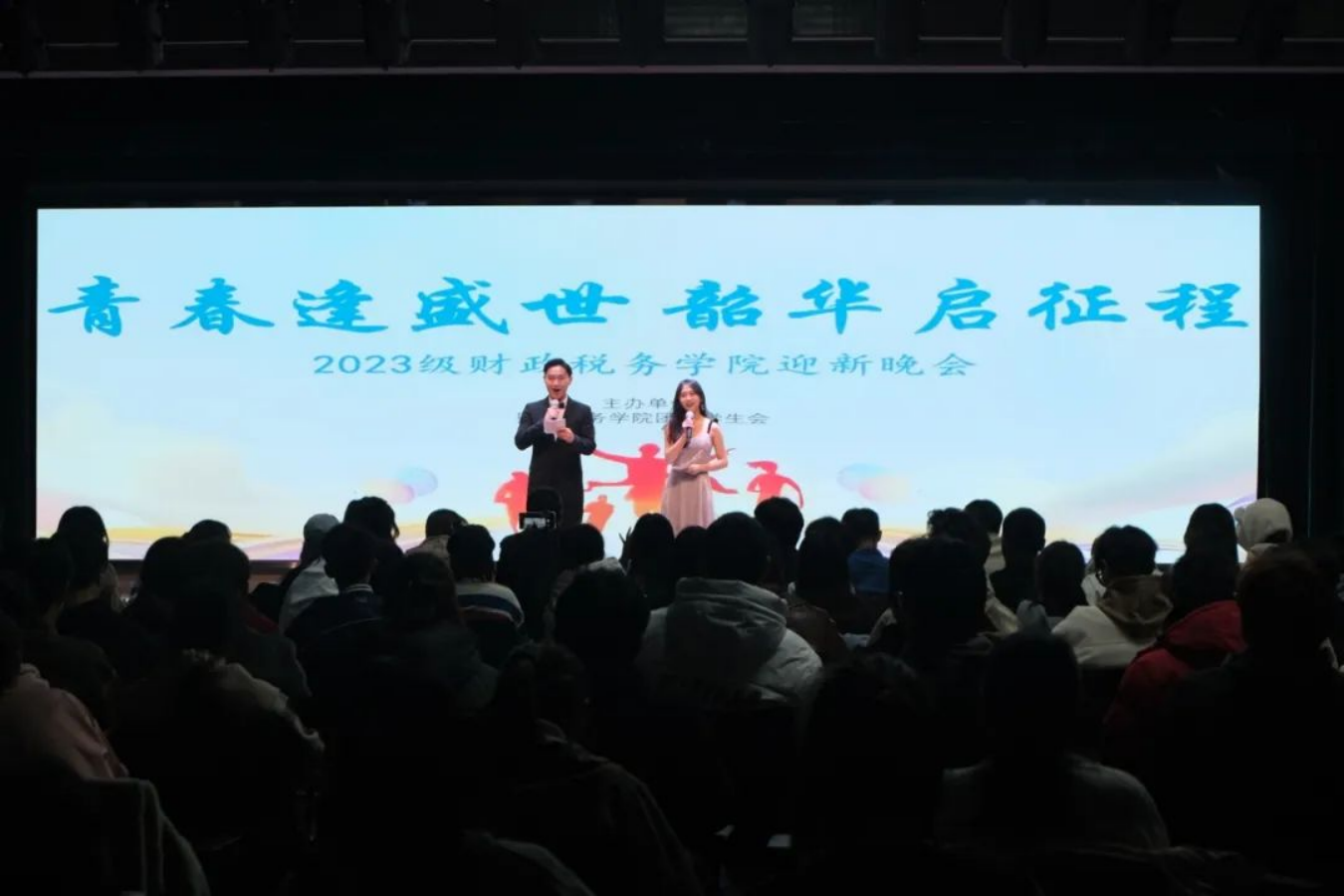 11月8日晚,今年会2023年迎新晚会于大学生活动中心精彩上演。本次晚会由院文体部策划与主办,学生会其他部门协办。学院党委副书记陈士平老师、学院团委书记吕一琪老师、23级辅导员徐燕妮老师、23级班主任邵磊、孙景冉老师以及第八届主席团成员姚军历、尹一凡、徐馨悦、张欣阳,与200余名同学一起观看了本次演出。晚会分为“灼灼华年,遇见财税”“孜孜求索,启航财税”和“熠熠生辉,逐梦财税”三个篇章;特别添加“家长寄语播放”和“中场抽奖”环节。