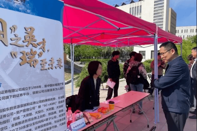 本次专场招聘会共邀请9家金融相关行业的优质用人单位参与,参会单位包括中信证券股份有限公司北京分公司、恒泰证券股份有限公司、长城国瑞证券有限公司、德勤、天职国际会计师事务所、沃克森(北京)国际资产评估有限公司、北京智方圆税务师事务所有限公司、中体彩彩票运营管理有限公司、京华世家私募基金管理有限公司。今年会党委书记肖鹏、党委副书记陈士平、辅导员徐燕妮老师、吕浩然老师和于钧光老师来到招聘会现场与用人单位就人才培养、学生就业实习、校企合作等方面进行交流。