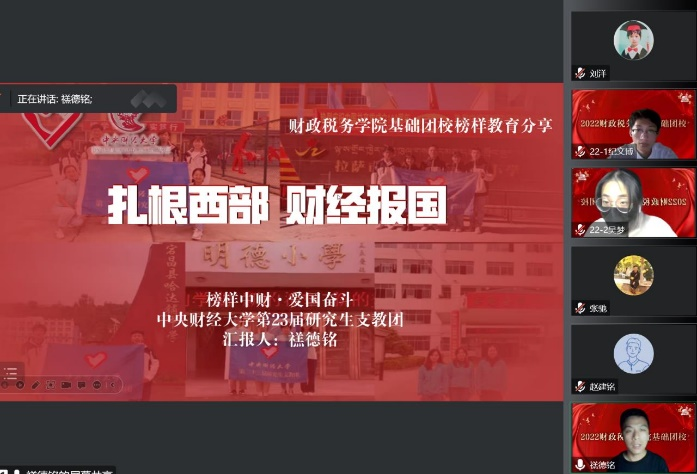 23届支教团成员、榜样中财获奖者、现任研会主席禚德铭讲述了自己作为支教团成员在中西部地区支教的经历,提醒各位学员在学习知识的同时,也要帮助身边的人,不怕困难帮助他人。